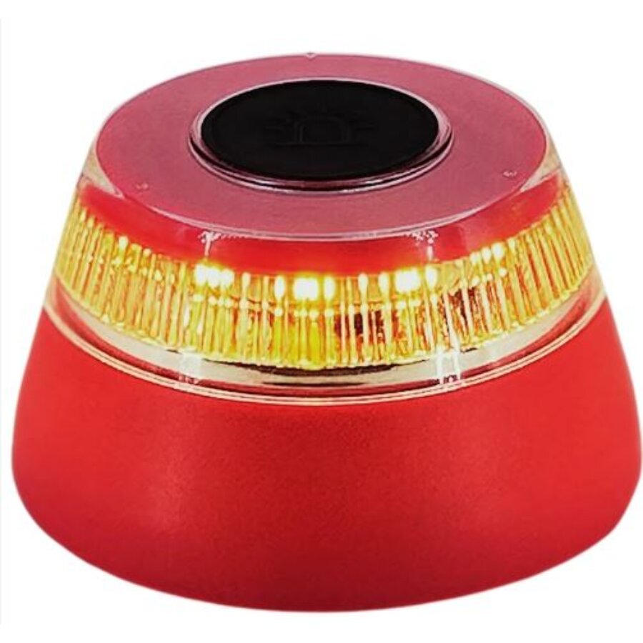 La baliza V16 es un dispositivo luminoso portátil, con forma de pequeño cilindro o cúpula, que emite una luz ámbar intermitente de alta intensidad visible en 360 grados.